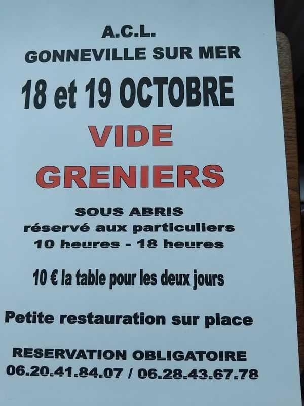 Vide greniers les 18 et 19 octobre à Gonneville-sur-Mer organisé par l'Association Culture et Loisirs de 10 heures à 18 heures.