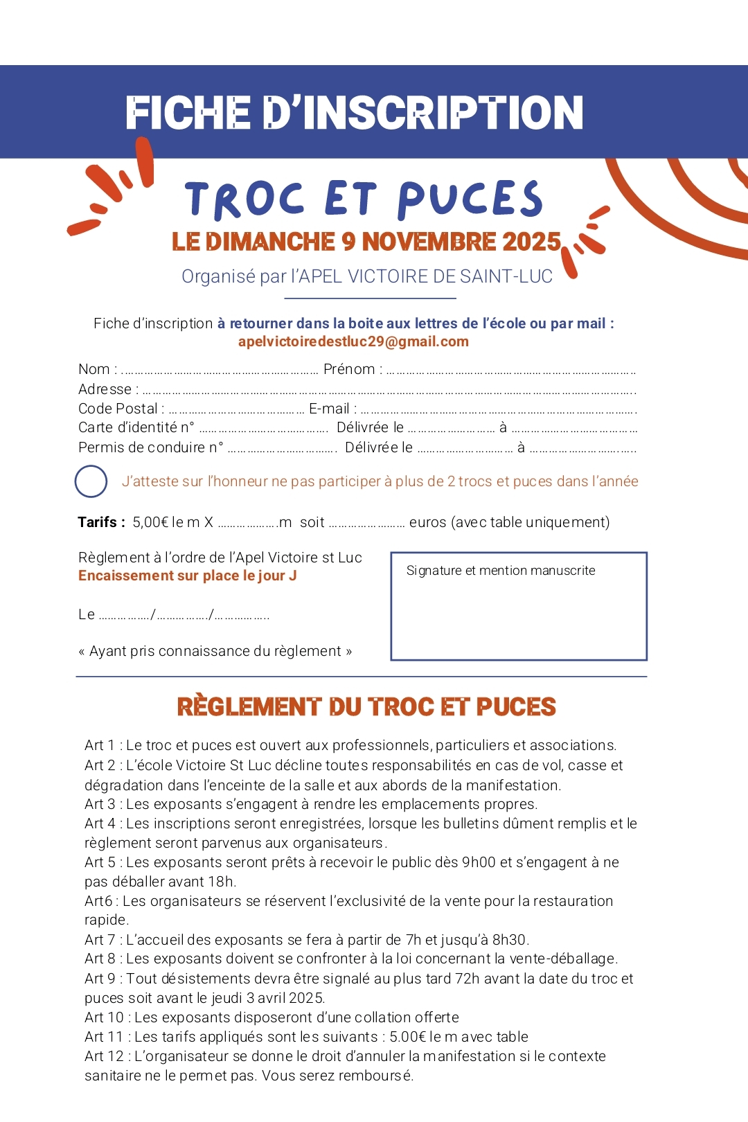 -Tout désistements devra être signalé au plus tard 72h avant la date du troc et puces .