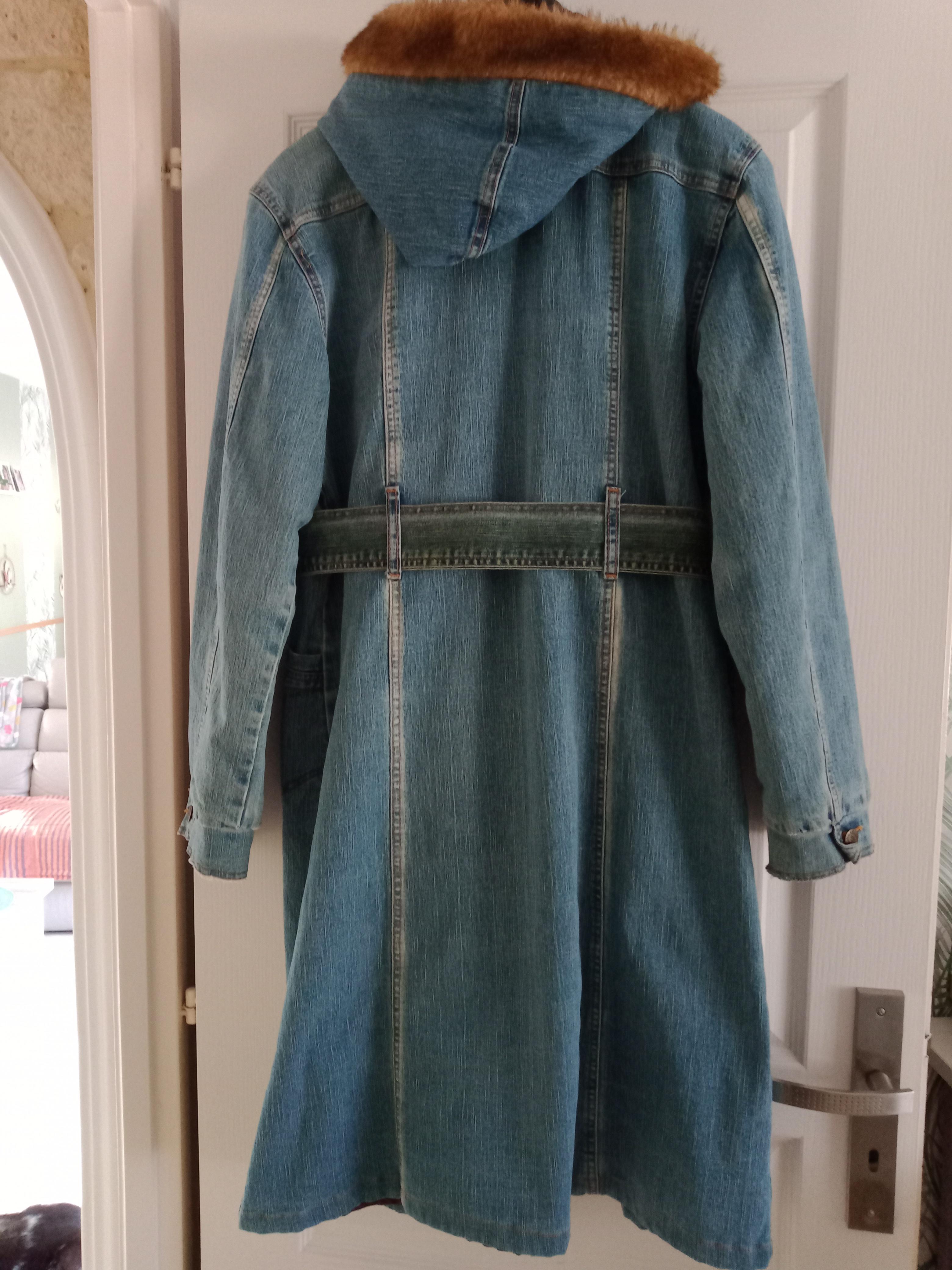 Manteau en jean's pour femme avec capuche, doublé en intérieur.