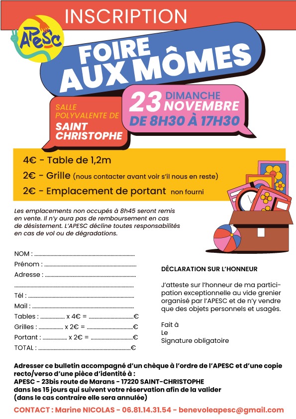 Foire aux mômes (jouets, vêtements, puériculture) - Saint-Christophe