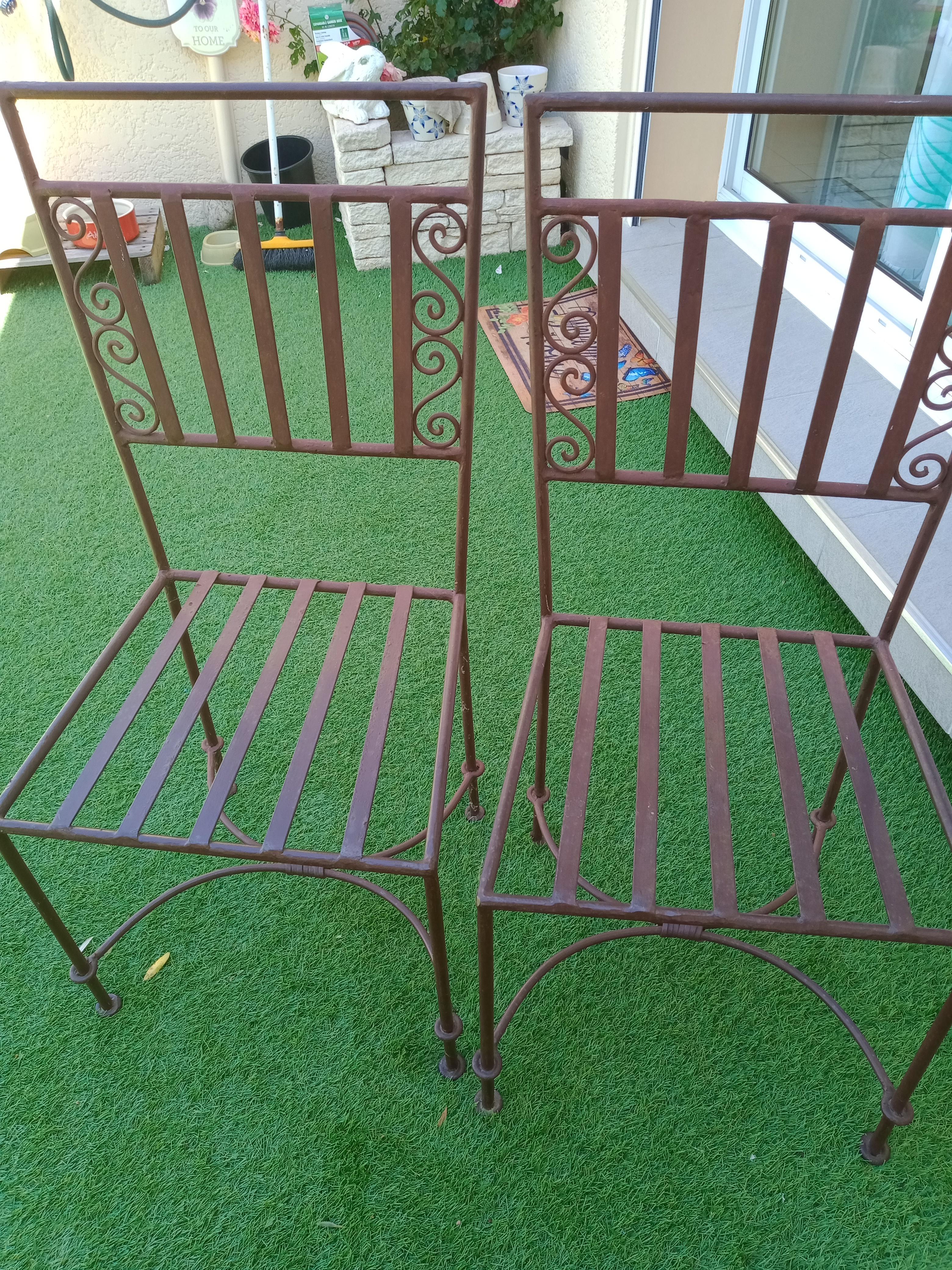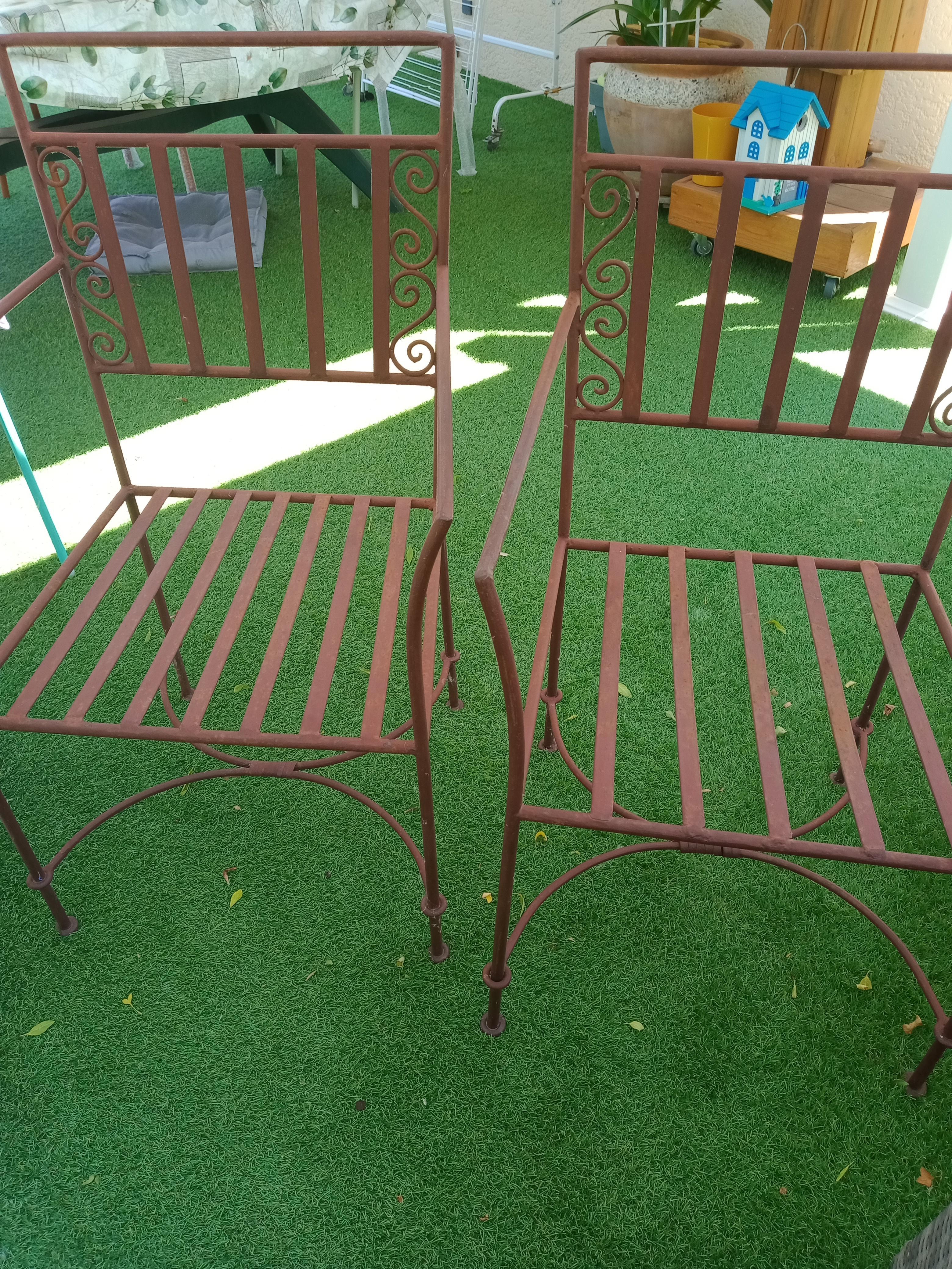 2 Chaises et 2 fauteuils de jardin en fer plein.