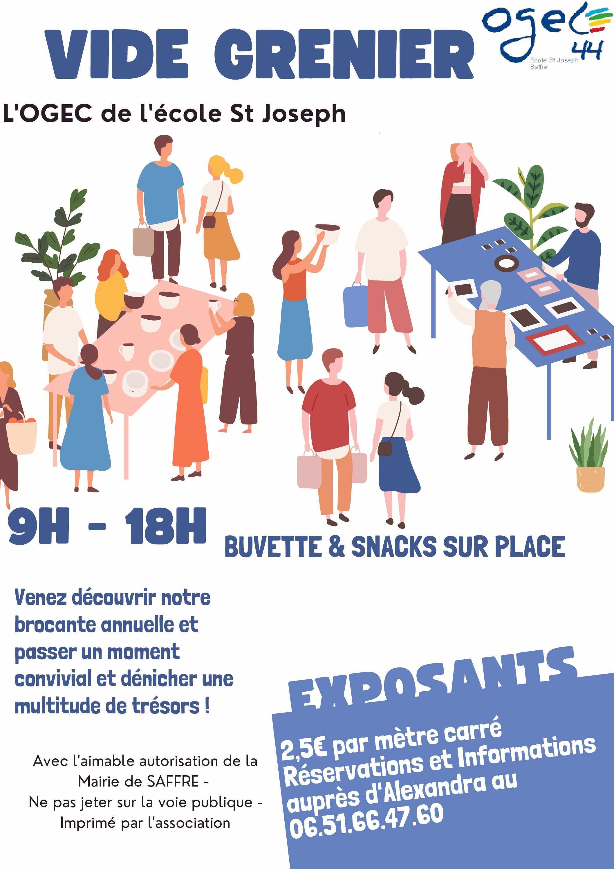 Vide-greniers. Château de Saffré de 9h à 18h. Entrée gratuite. Ouvert aux particuliers et professionnels. Exposition payante, déballage sur place à partir de 7h00. Restauration et buvette sur place. Inscriptions et renseignements sur le site Internent OGEC Saint Joseph Saffré Dimanche 27 septembre de 9 h à 18 h. Parc du Château, Saffré. Payant.
