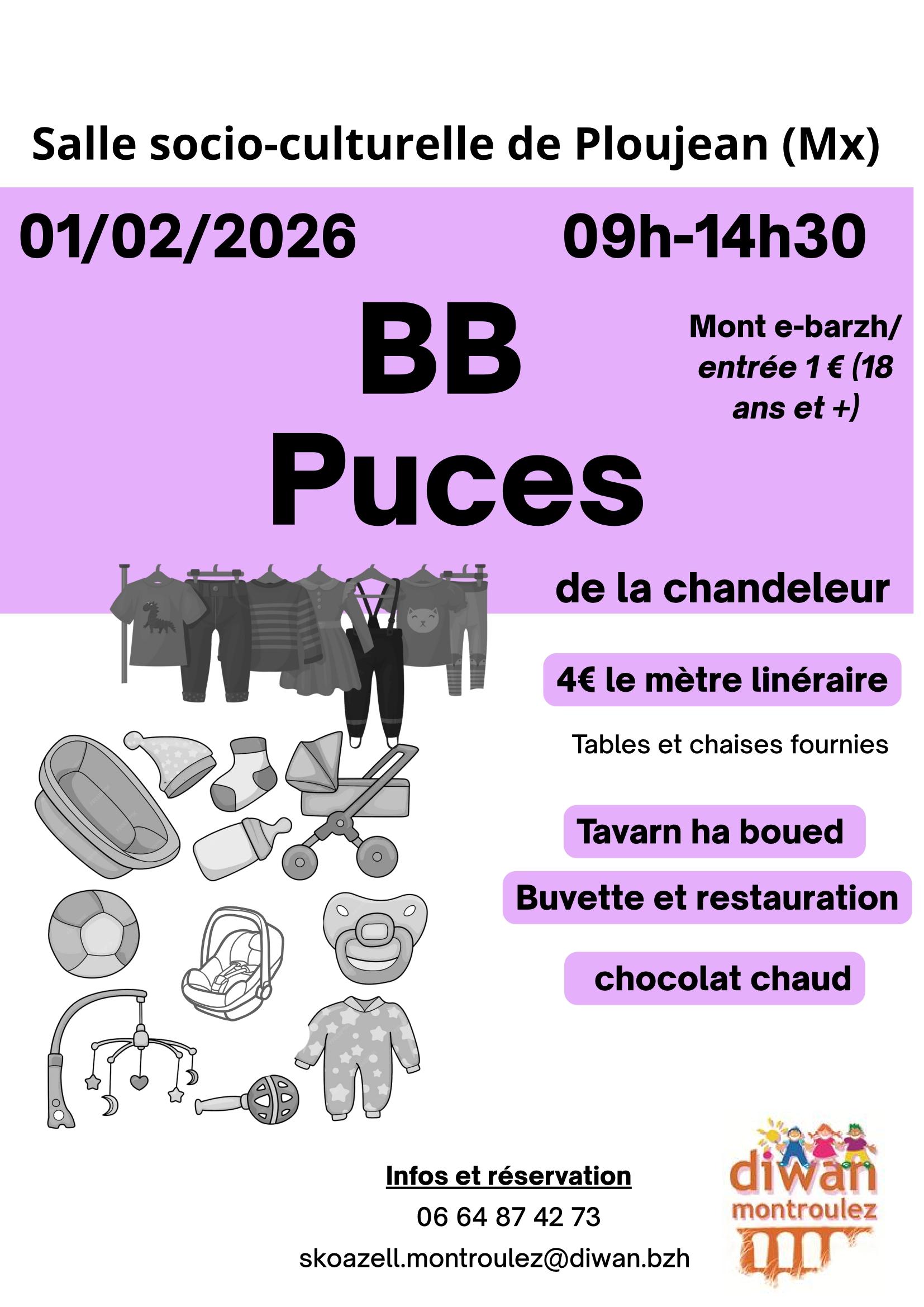 Dimanche 1er février de 9 h à 14 h 30, salle socioculturelle de Ploujean, videz vos placards pour la Chandeleur (vêtements bébés,enfants, matériel de puériculture (biberons, cosy, poussette, jouets, jeux de société, livres…).