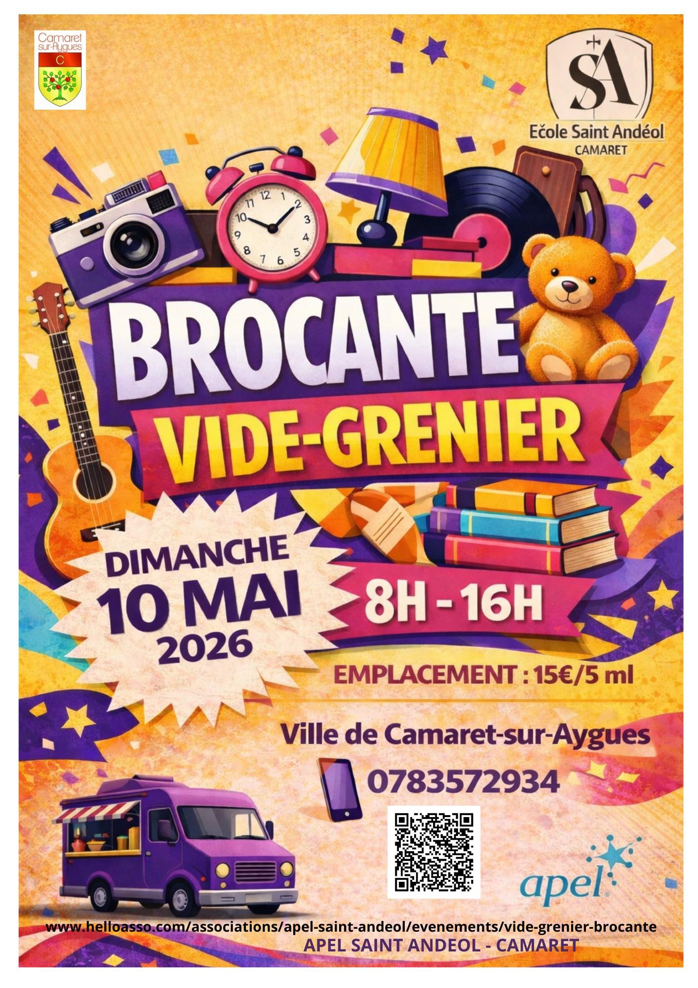 Réservation en ligne : https://www.helloasso.com/associations/apel-saint-andeol/evenements/vide-grenier-brocante?fbclid=IwY2xjawQAYmFleHRuA2FlbQIxMABicmlkETBPUmRqbThGY25rSUhCVUtBc3J0YwZhcHBfaWQQMjIyMDM5MTc4ODIwMDg5MgABHlxJSmq82an_Sfh9IMk6CUEJPnea5y-jmpW8LqBF7g4oELo9pO8H8Ow7L6Kp_aem_xlDT0I8lP1jgJqb0Ziq7Ww