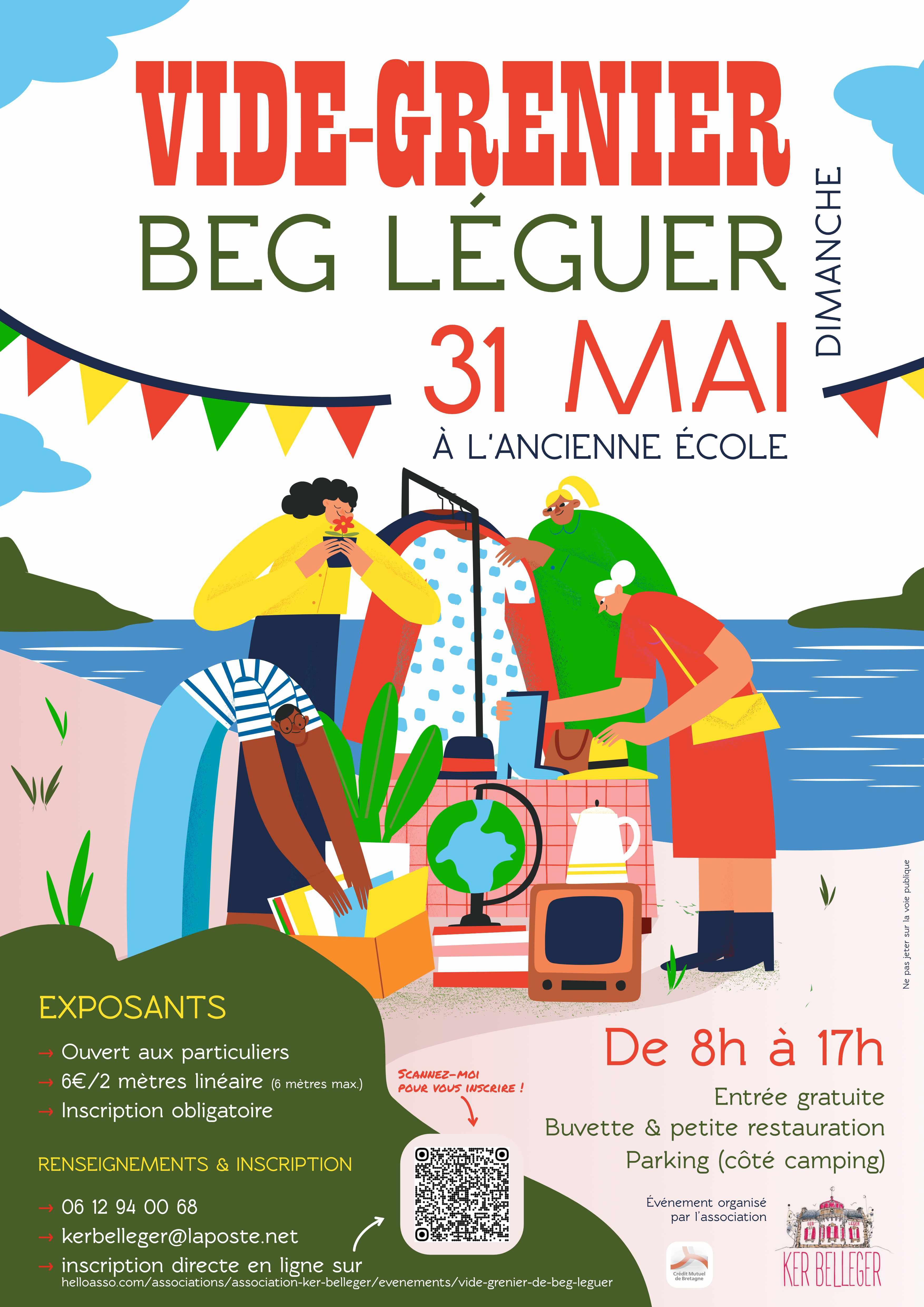 Inscription en ligne possible sur: https://www.helloasso.com/associations/association-ker-belleger/evenements/vide-grenier-de-beg-leguer