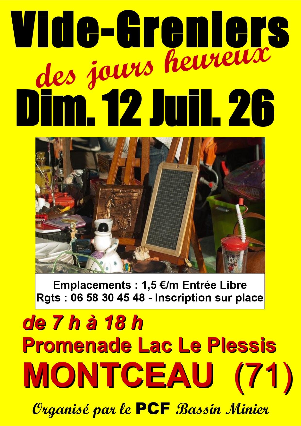Vide-greniers des jours heureux sous les platanes autour du Lac du Plessis à Montceau les mines.