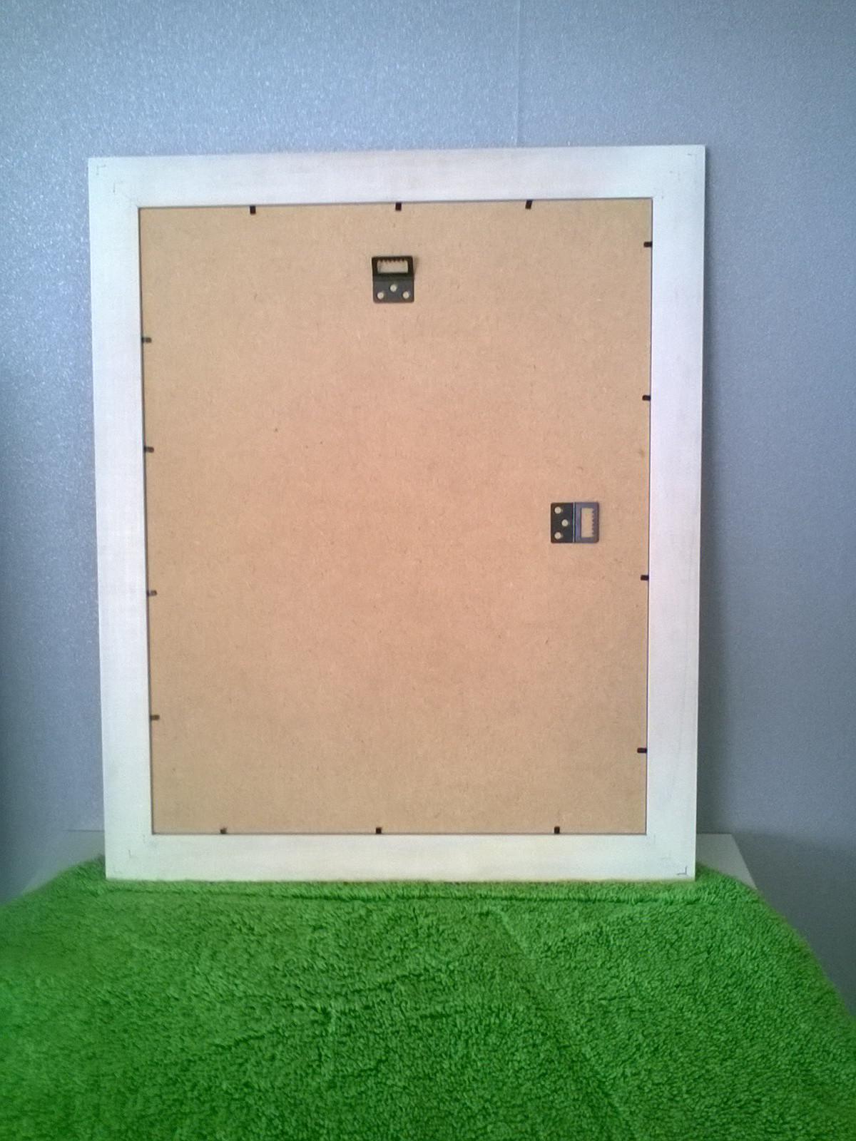 Cadre photo en bois peint blanc cassé.