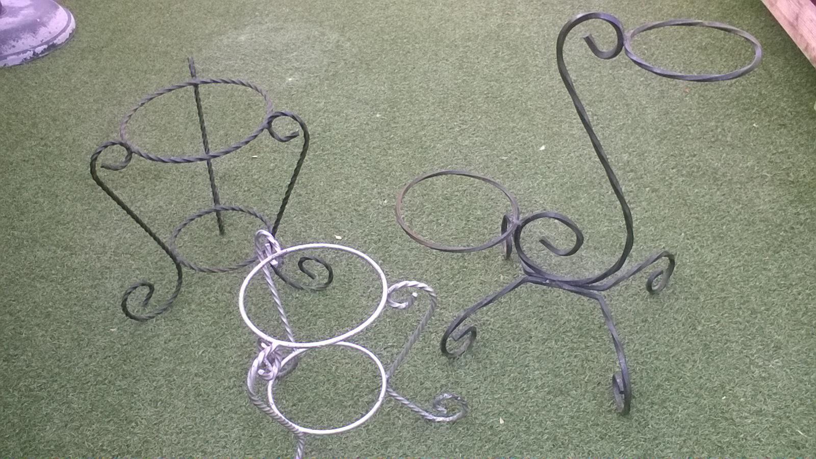3 supports de plantes en fer forgé, pour pots circulaires.