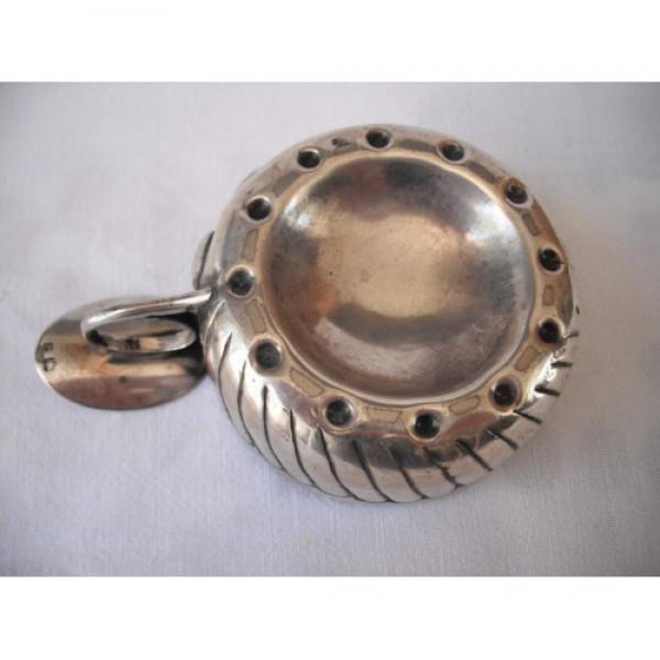 Un joli dégustateur ou tastevin du début du 20e siècle français en argent plaqué. Remarquez le design de cercle en relief sur un côté de la cuvette et le modèle festonné sur le côté opposé. L’intérieur de la cuvette est ponctué de petits cercles soulevées ou des points. Et enfin, la face inférieure de la repose-pouce présente deux caractéristiques distinctes, la marque de fabricant : une étoile entourée de PEMAJ et une autre marque 2G .