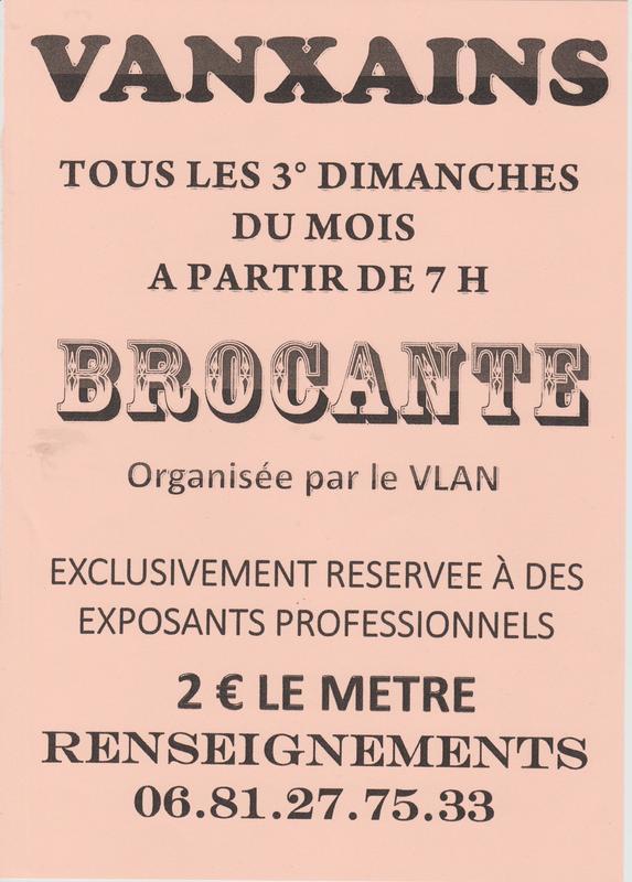 Brocante mensuel tous les troisième dimanche du mois exclusivement reéservé à tout ce qui est brocante et collections , objets neufs et vêtements non admis ( style : objets de cuisine , vêtements , objets de fetes ) merci .