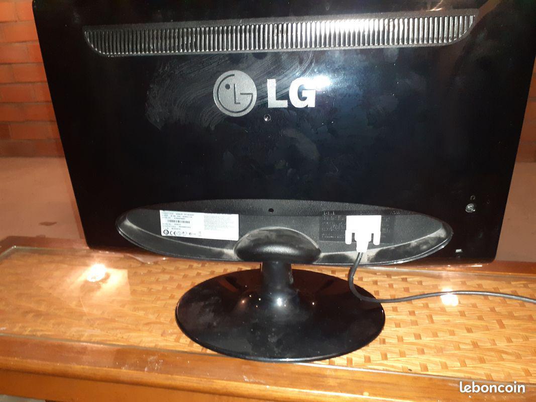vends un grand écran plat d'ordinateur couleur noir de marque LG de 21 pouces s'adapte a tous types centrale
