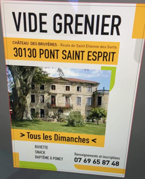 Nouveau, vide grenier tous les dimanche dans le magnifique cadre du Château des Bruyères et ses plus gros platanes d'Europe .