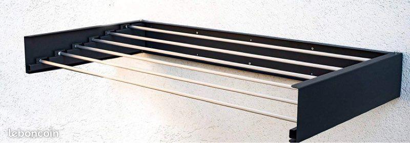 vends un séchoir a linge mural pliable est un équipement de maison très pratiquepour les personnes qui cherche a économiser de l'espace & a sécher le linge Comporte 5 tiges de plus 3 Mètres Matériaux en aluminium réglable Voir photo