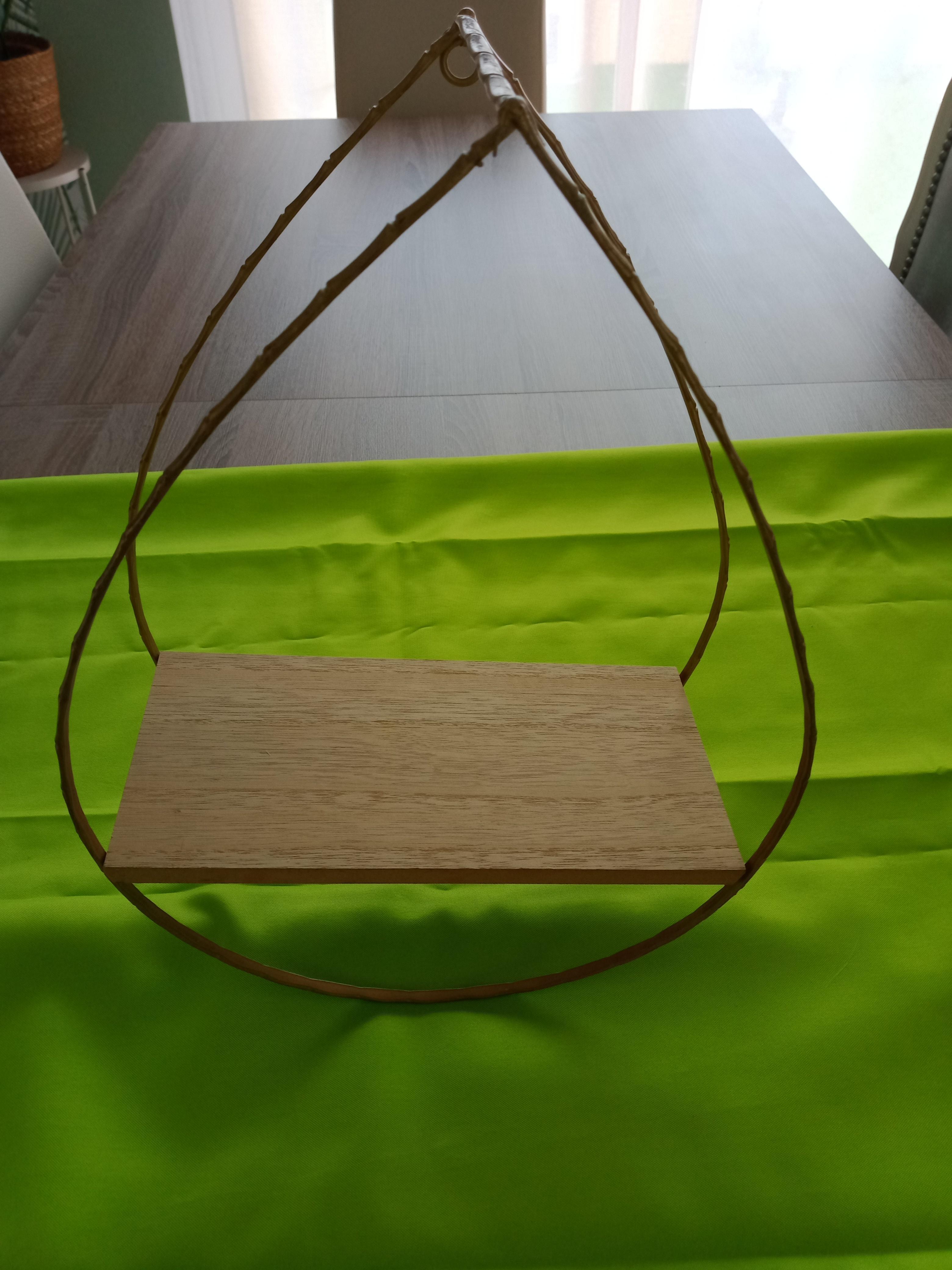 Etagère déco fer et bois forme goutte d'eau à suspendre.