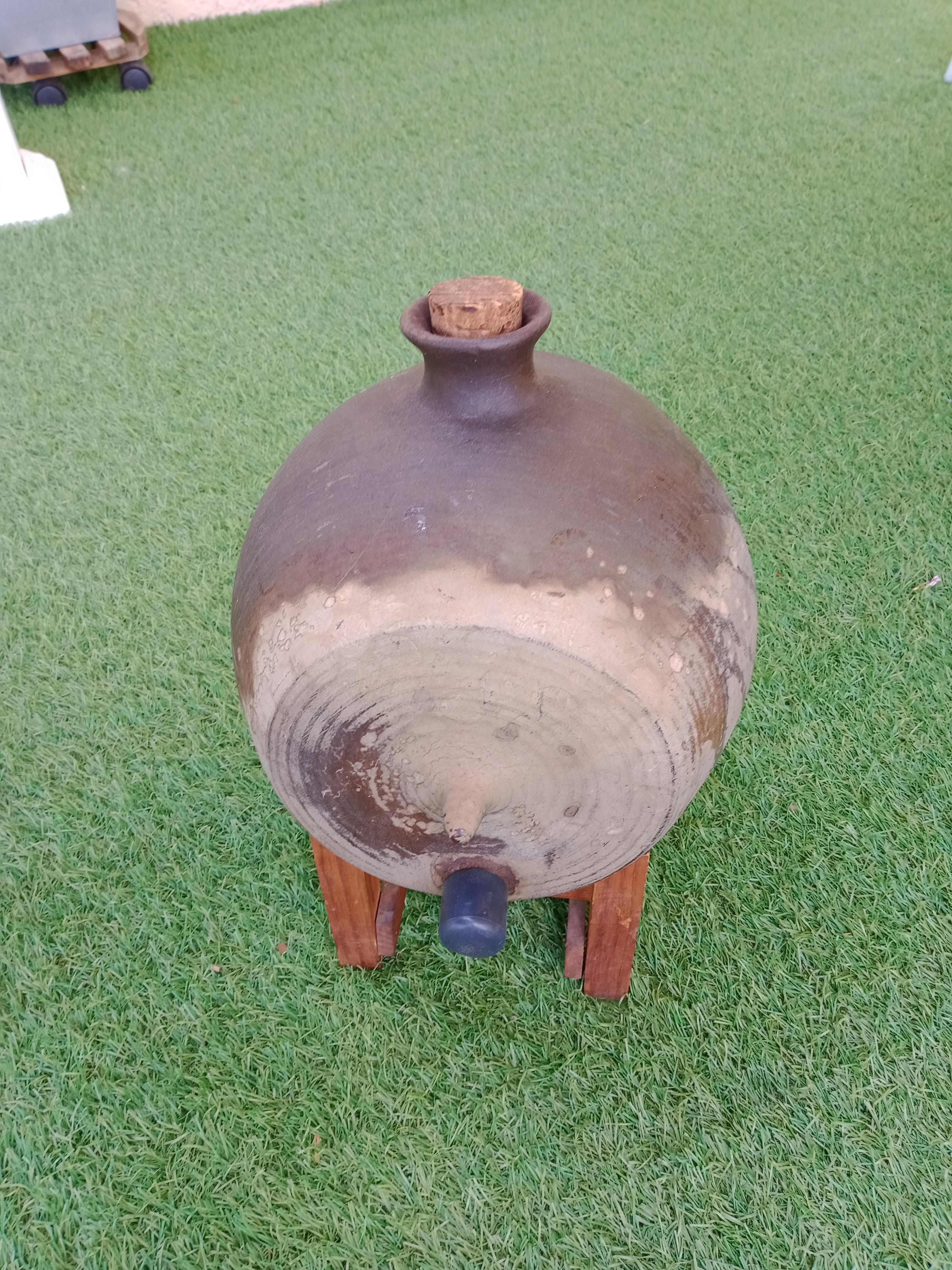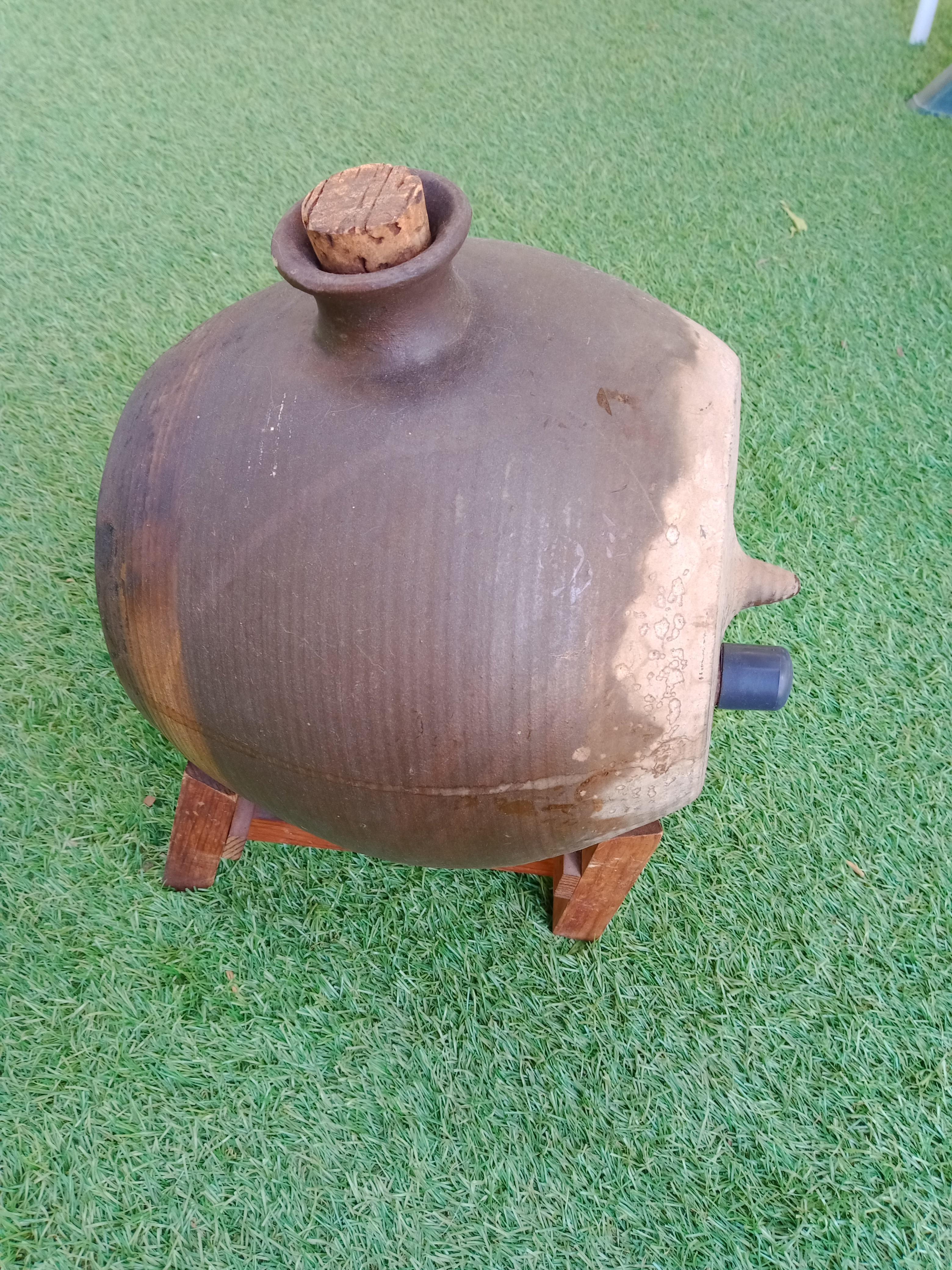 Vinaigrier en grés du marais de forme ronde (sans vinaigre), contient environ 5 à 6 litres avec son support bois. (pas de robinet)