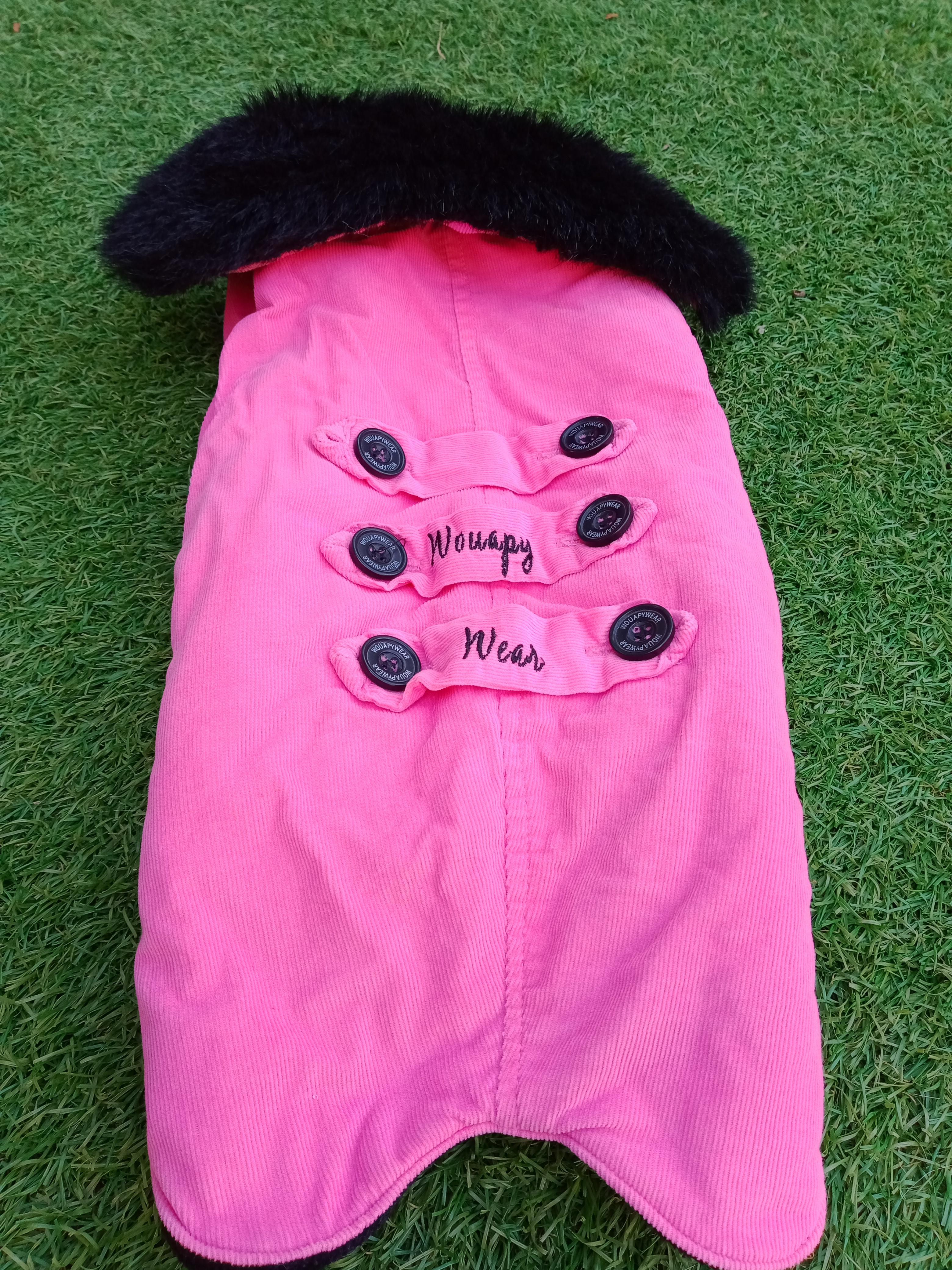 Petit manteau velours rose pour chien doublé polaire