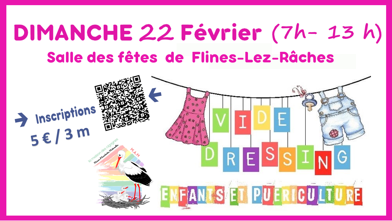 inscription obligatoire via https://www.helloasso.com/associations/mam-la-maison-des-cigognes-59148/evenements/vide-dressing-enfants-et-puericulture