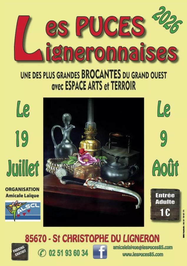 Chaque été, à Saint-Christophe-du-Ligneron (9 km de Challans), se tient l'une des plus grandes brocantes à ciel ouvert de Vendée et du Grand Ouest. Les Puces Ligneronnaises ne sont pas un vide-greniers, mais une véritable brocante réunissant des professionnels passionnés.