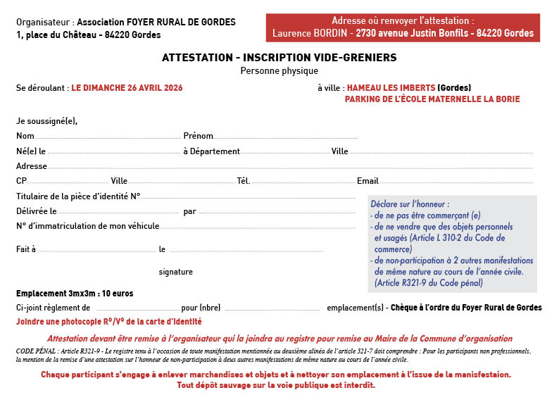 Réservations : 06 72 18 06 02 - laurence.bordin21@gmail.com