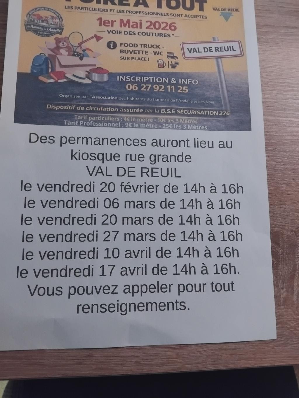 exposants voie des coutures et chaussée du parc val de reuil vous pouvez arrivé a 5h00 le matin.renseignement 0627921125.