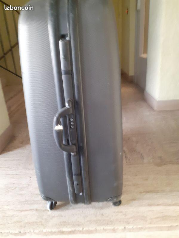 vends une grande valise en plastique dur avec une plus grande capacité très pratique 4 roue motrices intérieur noir