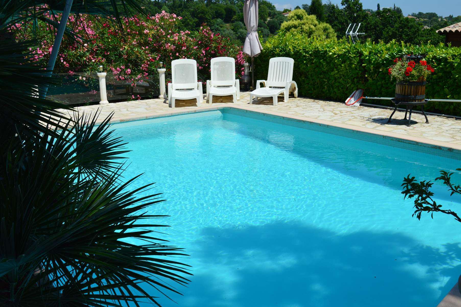 Montauroux VAR loue toutes saisons GÎTE tout confort calme, Wi-Fi, aménagé pour 5 personnes, 70m² avec mezzanine + terrasse couverte, espace détente de 240m² avec salon de jardin transats barbecue, piscine, parking dans propriété entièrement clôturée, 500m cœur village tous commerces, proche lac SAINT-CASSIEN mer montagne Gorges du Verdon, Massif de l’Estérel, Grasse 20km, Cannes 25km, Fréjus Saint-Raphaël 30km. De 500 à 700 euros/semaine selon période. Tel : 00 33 (0)4 94 76 49 00.