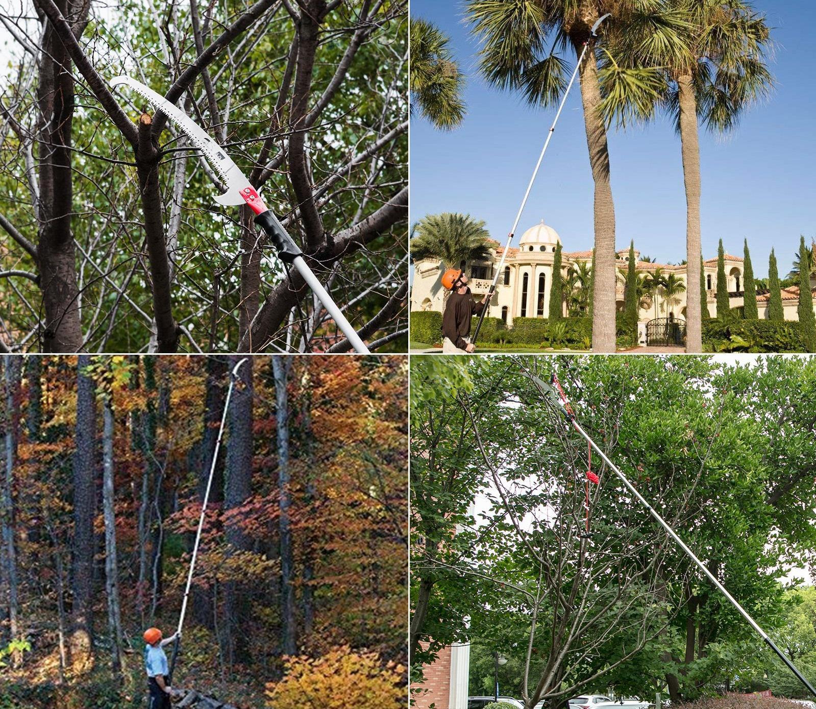 - Doté d'une longueur totale de 4,2 m, d'une portée télescopique de 1,2 à 3,6 m (4 à 12 pi), la scie à perche télescopique est idéale pour couper et tailler les branches et les feuilles.