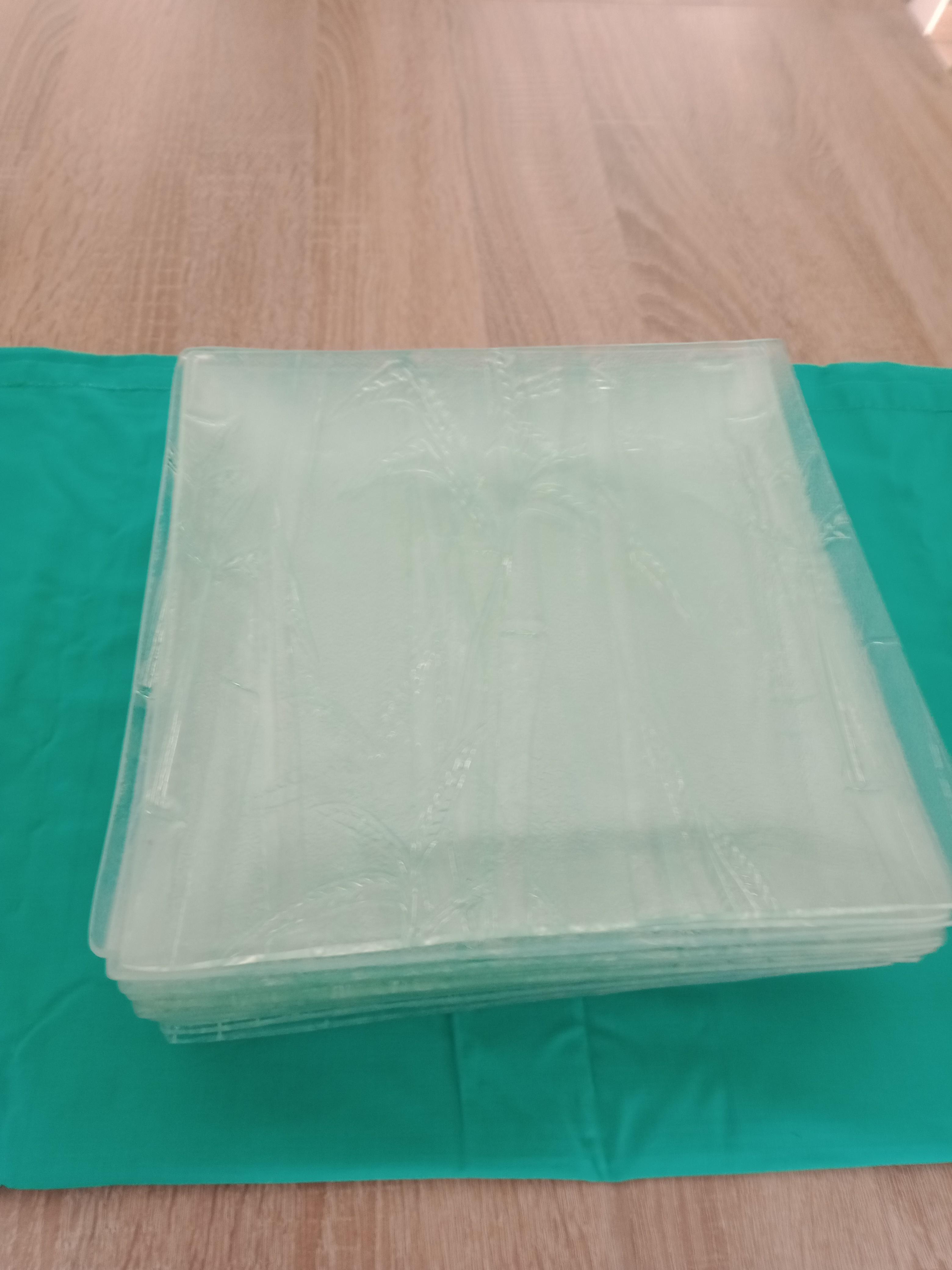 Lot de 14 assiettes en verre motif bambou en très bon état.