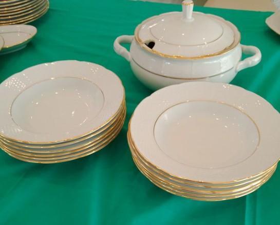 Service de table porcelaine de 84 pièces blancs et dorées
